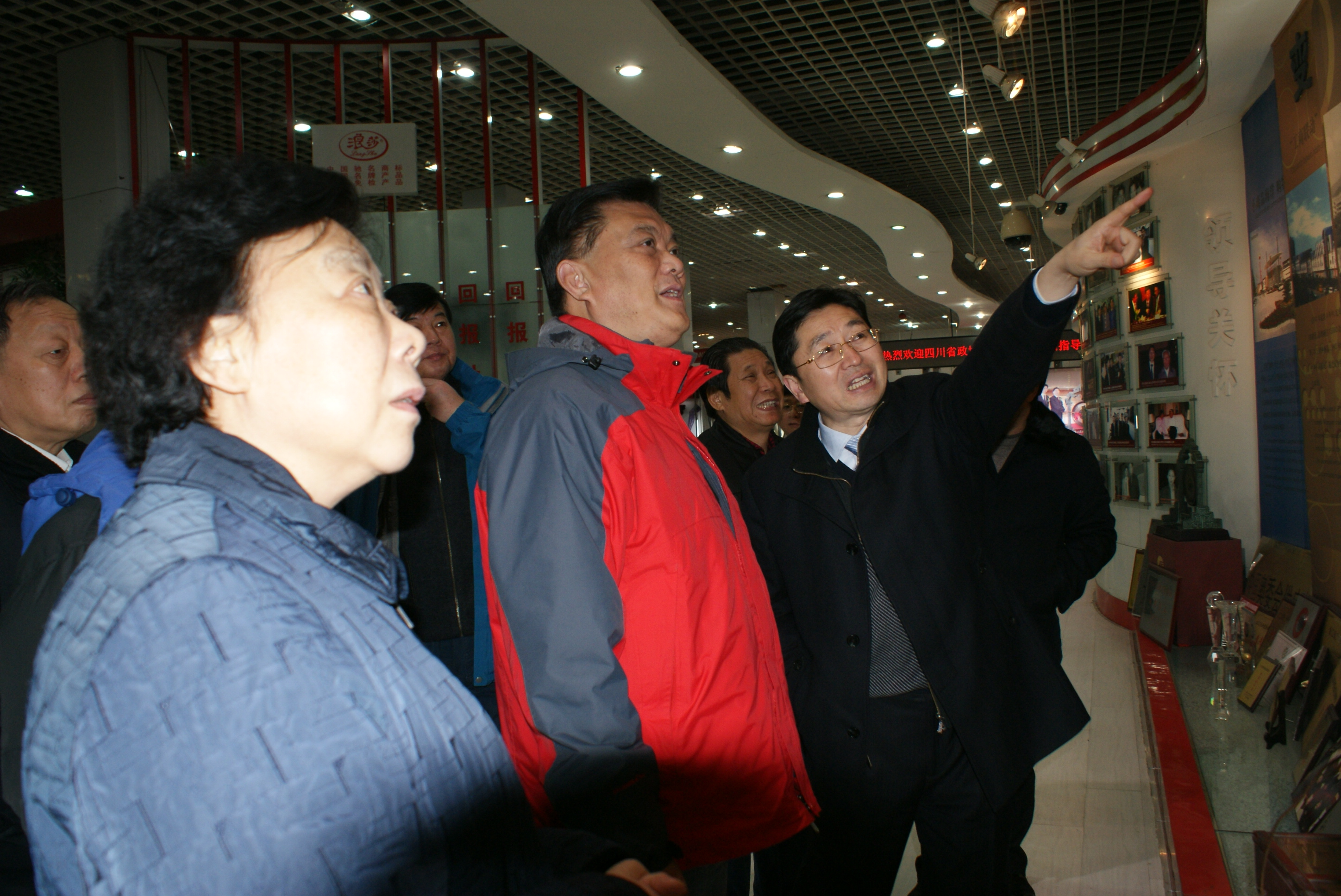 隨后解主席來到了浪莎產(chǎn)品展示中心,作為全國工業(yè)旅游示范點,展示中心不僅陳列展示了浪莎企業(yè)文化和浪莎產(chǎn)品,還對義烏人文及小商品城的變遷進行展示宣傳,吸引了來訪領(lǐng)導的駐足觀看品讀。在座談會結(jié)束后,解主席一行啟程離開,臨行前解主席與翁董事長合影留念。