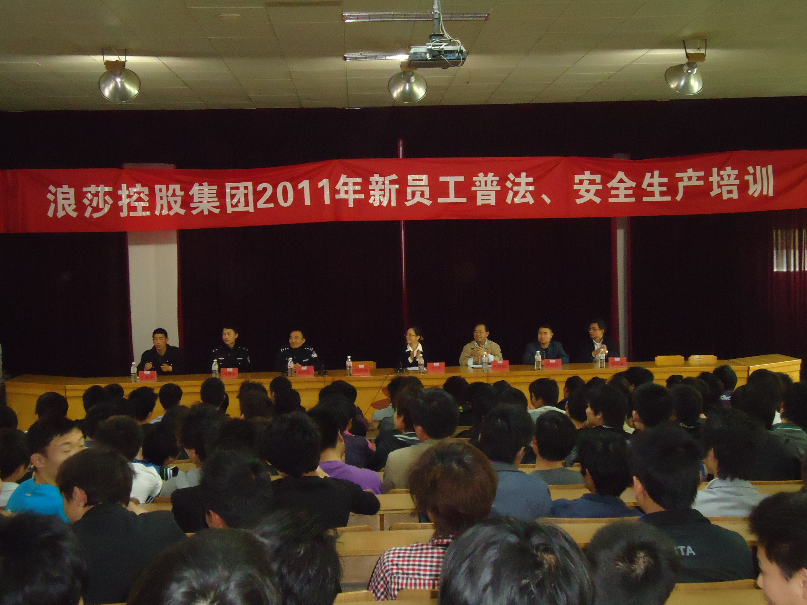 2011年4月20日,“浪莎控股集團2011年新員工普法、安全生產培訓”在義烏城鎮職校進行,500多名16到35周歲的青年員工和車間安全員參加培訓,主講人員為義烏稠江派出所的相關領導及專家,集團公司領導、浪莎黨支部主要成員列席培訓會并做重要講話。